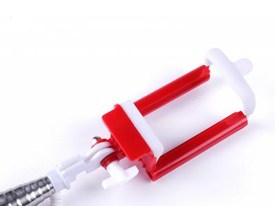 Custom branded foldable selfie sticks with a 3.5mm jack connection, featuring an anti-rotation system and a comfortable ergonomic handle. This custom selfie stick includes a built-in shutter button and a stainless steel pole with padded brackets to ensure optimal adjustment and protection for your smartphone. The adjustment nut allows you to fix the stick at your desired shooting angle. Compatible with all types of smartphones.
