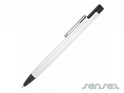These promotional, executive looking, branded pens feature a push button and a retractable ballpoint with black ink. Printed Pens are great for around the office or as gifts. These custom pens come in your choice of black or white.