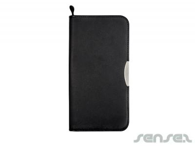 These promotional passport holders & personalised travel wallets are great for travel companies or business who fly a lot! They are made from black leather with a silver badge, checked fabric interior and internal zip pocket.