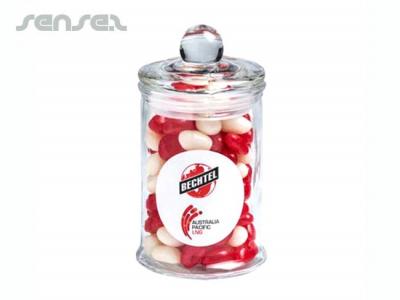Other innovative corporate gift ideas that could be suitable to create brand awareness include these cheap promotional Drum Filled With Lollies (1L), quirky advertising gifts such as these Apothecary Candy Jars (80g) or how about using one of our more bespoke custom made products such as these great quality Corporate Coloured Mini Jelly Bean Jars (100g)?