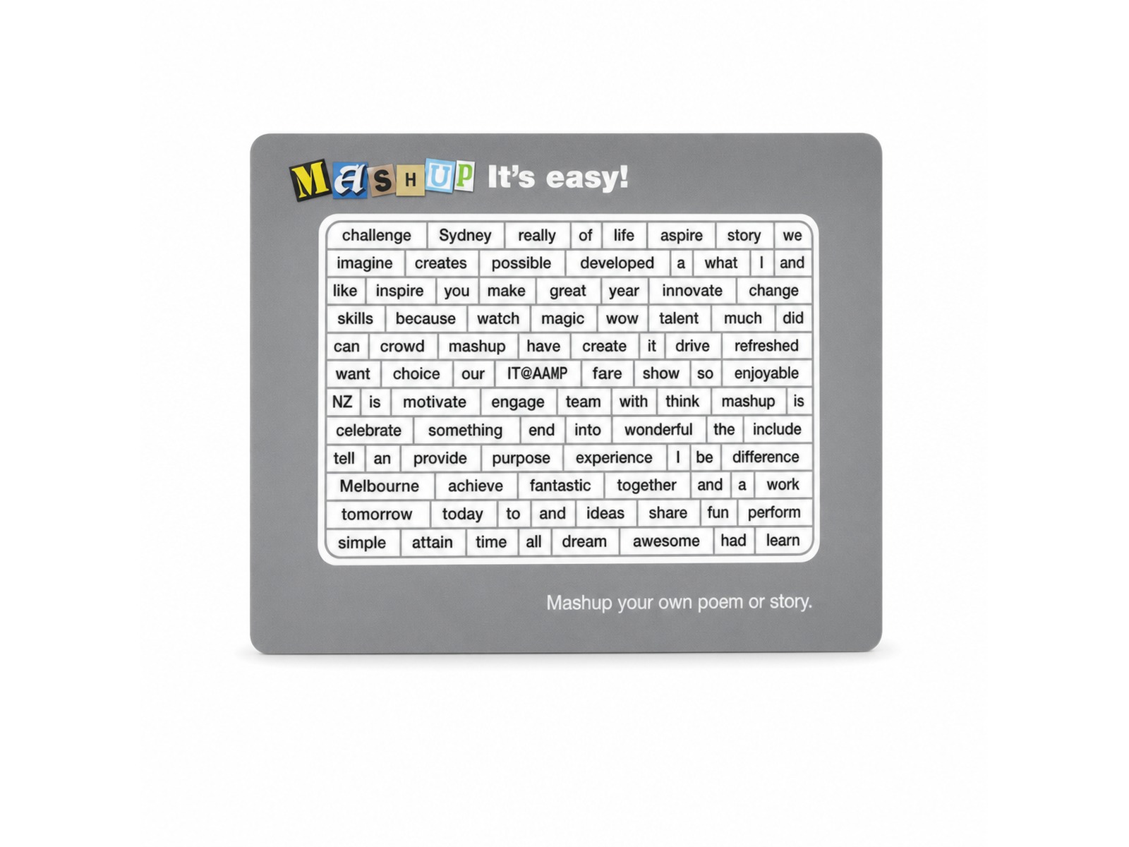 These fun word puzzles are a great way of getting your message interact with your audience and make them really think about what you are saying. The magnetic words can then be reconfigured by them on their fridge to make all kids of other sentences which is fun and engaging. Great for adults and kids alike!