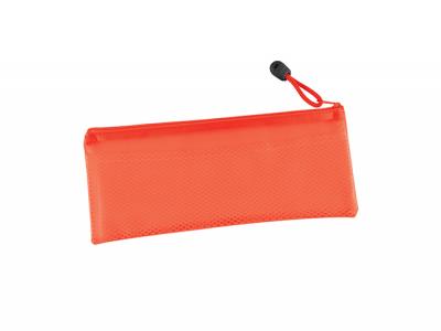 PVC Pencil case / carry case with internal mesh divider and zip with pull tag. Use to hold stationery, kids items, cosmetics, first aid items, medications, sample collections, labels, coupons and computer cables. Perfect for any kind of promo and events! This item is made from PVC.