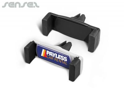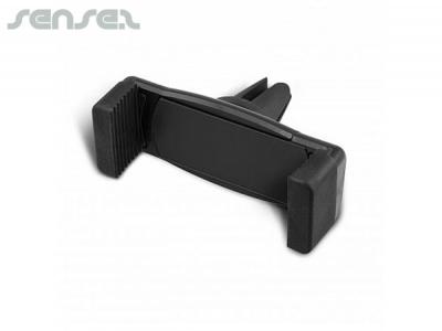 Spring loaded phone holder which clips to car air vents and securely holds a phone so it can be seen by the driver and used as a GPS. Perfect for IT and business people!