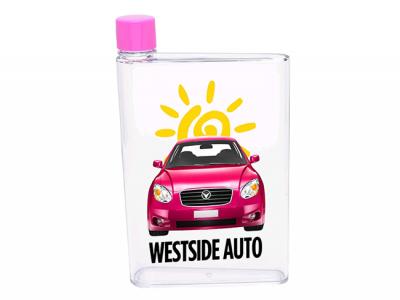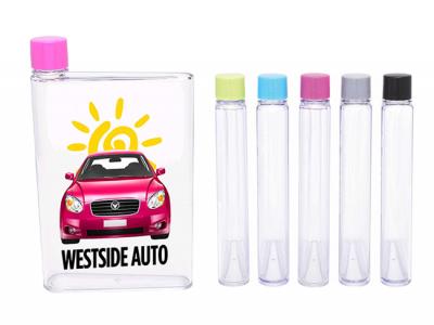 Made from BPA free material this Notebook style drink bottle is easy to carry and fits perfectly into a handbag or satchel, alongside your notebook. This product can be printed in full colour for maximum impact. For use with cold liquids only. Perfect for students! These Bottles come packaged in a white box.