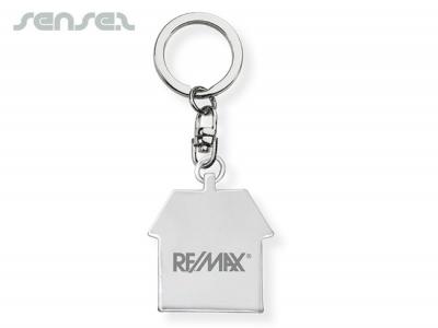 Custom brand these metal key chains (rotating house) or one of our best-selling promotional keyrings»shaped keyrings with your company logo!
