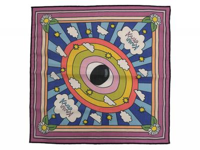 Printed on 1 side by sublimation and a matching colour edge stitching (Due to shrinkage exact size of the finished bandanna might vary - About 47x47cm subject to shrinkage after sublimation).