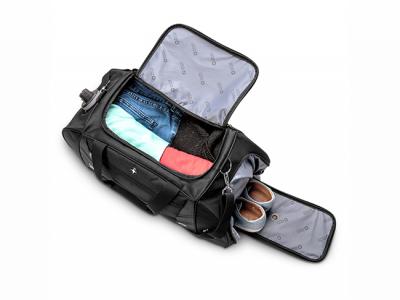 Swiss Peak have thoughtfully combined smart design with the needs of a busy lifetyle to create an outstanding multi purpose duffel bag which is ideal for long weekends or as a sports or gym bag. It is manufactured from a combination of 600D and 1680D polyester and it's many features include a large main compartment with a U shaped zip opening, a side entry shoe compartment with an air vent, an adjustable shoulder strap, a unique water bottle holder and a zippered side pocket.