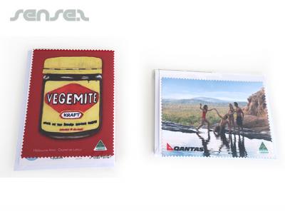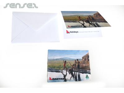These full colour printed custom printed gift cards come with a full colour microfiber towel to clean sunglasses with. The cards are ideal for Xmas greetings or wedding invites and make a great memorabilia also for any travel themed mailout. The cards and microfiber towels are made in Australia and the factory employs a team of special needs workers to assist in the manufacture of our quality products. Great for charities and promotions with a feel good factor!