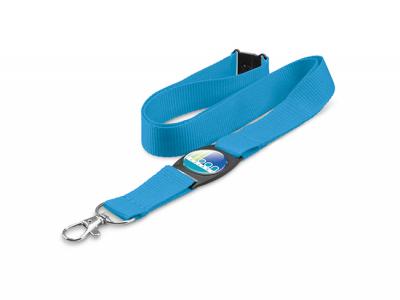 Polyester lanyard complete with a spring loaded metal clip, a safety clip and a unique plastic insert which can be branded in spot colour or full colour with a resin coated finish and the lanyard can also be branded. Perfect for business conventions!