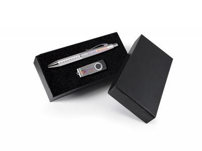 The Zaya gift sets consists of a ballpoint pen and 4GB flash drive. Displayed in a cardboard gift box with laser cut foam insert. Perfect as a special corporate gift!