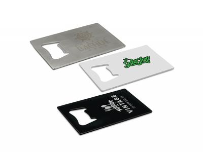 When practicality meets branding you get these stainless steel card Bottle Openers. This Bottle opener is shaped perfectly to fit in a credit card slot in all wallets, for permanent easy access to your brand name. Available in a range of colours with a large branding area this durable stainless steel bottle opener is sure to be in the wallets of all your customers! Optimal for mail-outs and hospitality merchandising.