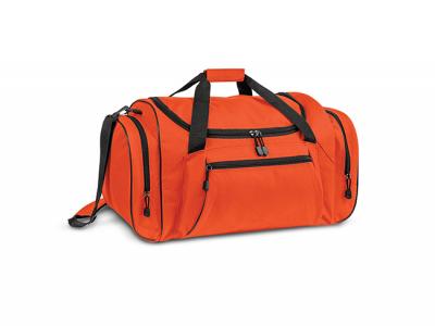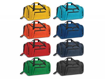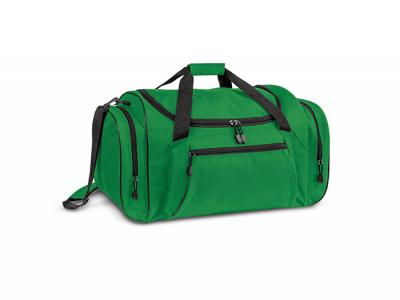 These large duffle bags are manufactured from 600D polyester. They have an adjustable woven shoulder strap with a curved shoulder pad for maximum comfort. The shoulder strap is removable and the bag also has woven carry handles with a Velcro cuff. Other features include a sturdy reinforced base with plastic feet, three zippered external pockets and two external pockets.