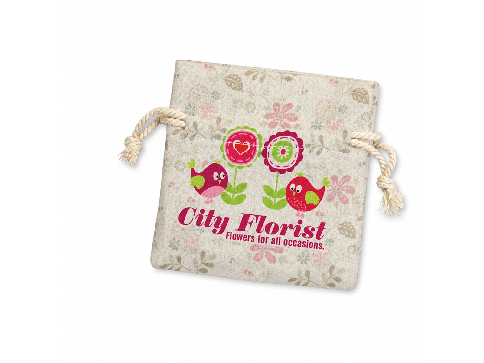 Print your logo onto these custom printed cotton drawstring gift bags (small) or one of our other innovative small pouches and use them in your next marketing campaign as a unique giveaway item.