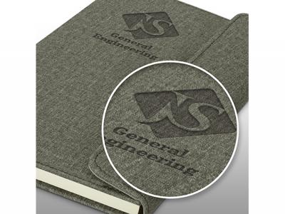 Canvas Notebook Folios are a premium Canvas Cover Notebook that comes with 100 leaves (200 pages) of 80gsm lined cream paper. Other features include a bookmark ribbon and a secure magnetic with an easy open tab that doubles as a pen holder. These promotional notebooks also have a hard cover with an on-trend heather style PU which thermo debosses to a stunning two-tone