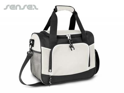 Custom print these colourful cooler bags, which are manufactured from 600D polyester with an inner lining of waterproof PEVA and laminated PE foam insulation. Perfect for outdoor activities, camping, shopping and travelling! They feature a zippered external front pocket, trendy white piping, handles with a Velcro cuff and an adjustable and removable shoulder strap.
