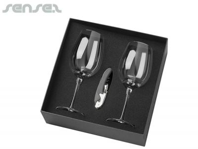 Our custom made Wine Glass Sets With Corkscrew can be produced from a minimum quantity of 50 pieces.