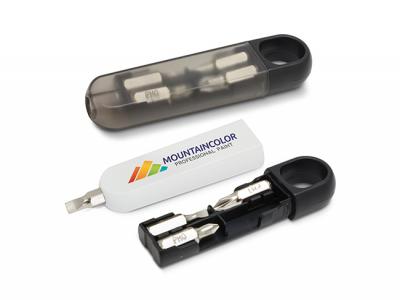 These compact screwdriver sets, which have two conventional and two Phillips screwdriver bits are a handy branded item. The outer housing acts as the screwdriver head and has a magnetic port to hold the selected bit in place makes this a convenient fix it screwdriver.