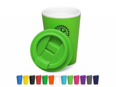 This promotional coffee cup is the perfect gift for the ecologically aware and practical minded customer. You can choose your custom colour combination between the cups and lids and mix and match according to your business colours.