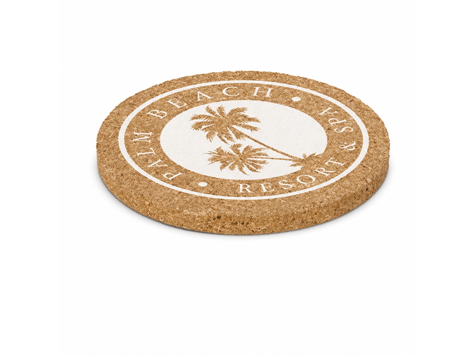 Personalize your island cork coasters - round or custom design cork merch for your marketing campaign.