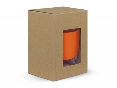 Fashion inspired 340ml Custom glass coffee cup with a secure push on silicone lid and a wide heat resistant silicone band. The silicone lid and band can be mixed and matched into 196 colour combinations. Glass is a natural choice for a clean, pure taste and it offers an eco-friendly alternative to single use cups. Custom Glass coffee Cups are presented in an unbleached cardboard gift box with a window to show the branding and product care instructions on one side or it can be presented in a Gift Tube (Black or Natural) for an extra $4 per item.