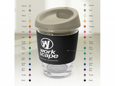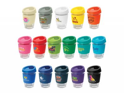 Print your logo onto these custom printed glass coffee cups (340ml) or one of our other innovative glass travel cups and use them in your next marketing campaign as a unique giveaway item.