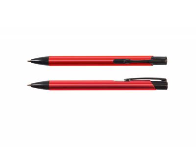 Matt finish aluminium barrel ballpoint pen with Black accents.