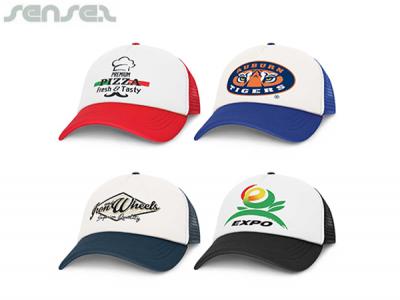 Personalize your trucker caps (white front) or custom design trucker caps for your marketing campaign.
