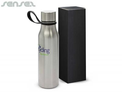 Smart 550ml double wall vacuum insulated stainless steel drink bottle with a soft silicone carry handle and a non marking EVA base. It offers exceptional performance and will keep drinks cold for 24 hours or hot for up to 12 hours. It has a secure stainless steel lid and is presented in a black gift box. It laser engraves to a natural etch.