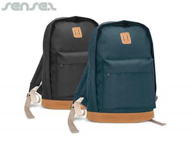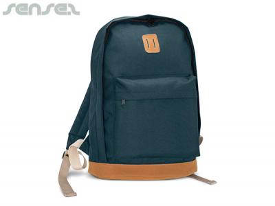 These are a trendy personalised backpack which is manufactured from 600D polyester with smart brown suede accents. These Custom backpacks have a padded back for comfortable carrying and natural woven shoulder straps with black padding which is adjustable. Other features include a zippered main compartment, a fully padded internal laptop compartment, an internal pocket for a tablet, a large zippered external front pocket and a natural woven carry handle. Custom Backpacks are great for school, university, IT promotions or conferences.