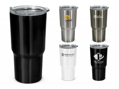 Personalize your large stainless double walled mugs (550ml) or custom design travel mugs for your marketing campaign.