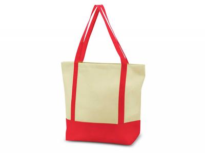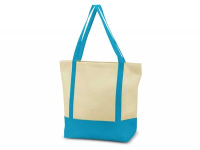 Los Angeles reusable two tone tote bag with a fashionable natural look and externally sewn carry handles for added strength are the perfect branded tote bag. The longer handles are designed for carrying it on a shoulder and give it a comfy feel. Los Angeles Totes have a large base gusset for added carrying capacity and are manufactured from 80gsm eco-friendly, non-woven material which can be recycled.