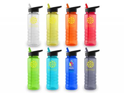 Titus Tritan Drink Bottles are a 725ml tritan drink bottle with flip up sip lid and straw. Made from BPA free Tritan these are an eco item everyone will love . Brand these Shatter, odour and stain resistant bottles, to become a crowd favourite. Not recommended for carbonated liquids.