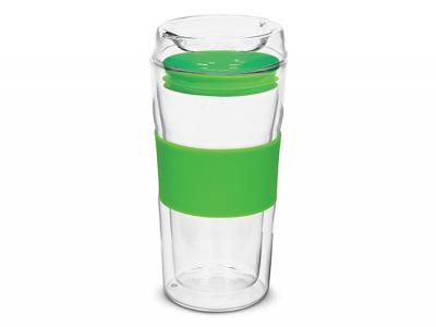 Eco Double Walled Glass Cups are a trendy 350ml double wall borosilicate glass cup for hot or cold drinks. It has a large silicone band and a push on glass lid with a secure silicone seal. Eco's double wall keeps drinks hot or cold for longer and remains pleasant to hold with no condensation on the outside. Borosilicate is a lightweight glass which is exceptionally strong and shatter resistant. Glass is a natural choice for a clean, pure taste and it offers a safe and eco-friendly alternative. Glass travel cups is presented in a white box. glass coffee cups is not dishwasher safe and handwashing is recommended.