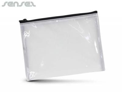 Devino is a small cosmetic bag which is manufactured from soft, transparent plastic. It has a black zippered closure with black stitching and a polyester lining which can be branded in full colour on both sides at no extra cost. Bring your products to life!