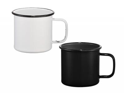 Enamel Metal Mugs feature a rolled rim for sipping comfort. These mugs are made by hand and have small imperfections that give them character. Your customers will love them and your brand will be present while they enjoy a refreshing drink at the campsite, BBQ or picnic with these impact resistant enamel metal cups!