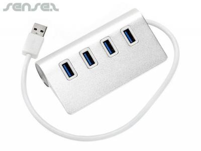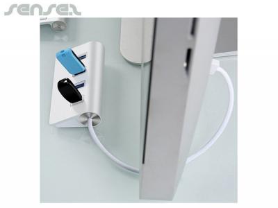 Quad USB Adapter Port Hubs area a lightweight and sleek in design this aluminium hub provides 4 x USB 3.0 ports and a 30 cm cable with either USB or Type-C connectors. Longer cable lengths are optional extras. These are the perfect branded office accessory for extra usb ports for the computer or laptop.