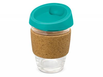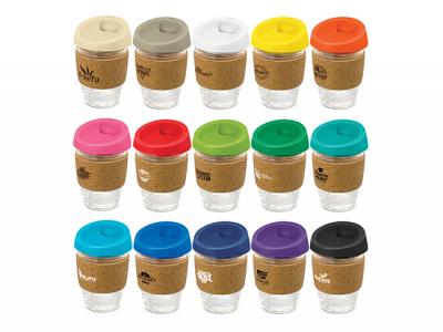 Incorporate branded glass coffee cups with cork band (340ml) in your next promotional campaign