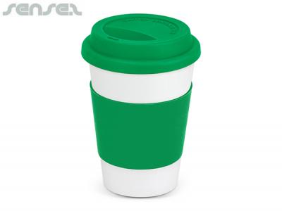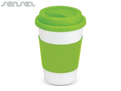 Custom brand these ceramic reusable coffee cups (350ml) or one of our best-selling promotional bar merchandise»logo mugs with your company logo!