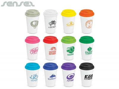 Custom brand these ceramic reusable coffee cups (350ml) or one of our best-selling promotional mugs»reusable ceramic coffee cups with your company logo!