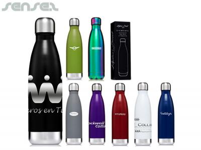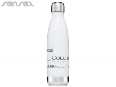 Glimmer Thermo Drink Bottles are a 500ml capacity printed water bottle perfect for keeping drinks icy cold. custom drink bottles are made of double-walled stainless steel and are vacuum insulated for maximum temperature control. These branded water bottles are able to hold ice for up to 24 hours, or keep hot drinks HOT. All bottles are crafted from food grade stainless steel and are BPA Free. Hand wash only. Do not freeze or microwave.