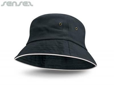 Personalised Bucket Hats are a premium heavy brushed cotton Embroidered Bucket Hat with stylish white sandwich trim around the base. custom bucket hats feature a sweat band and are available in three sizes Small, Med and Large. These are a smart bowling or school hat, a perfect addition to any uniform or sporting apparel. These Promotional Bucket Hats offer UPF50+ Protection from the sun and comply with ASNZS 4399-1996 standards.