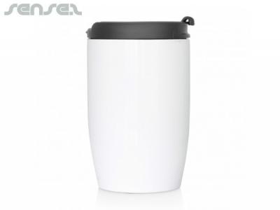 Custom brand these ceramic reusable coffee cups (350ml) or one of our best-selling promotional mugs»travel mugs with your company logo!