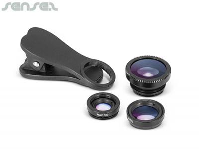 Get your logo printed onto these useful 3-in-1 lens kits which are presented in an compact EVA carry case. They have a 180 degree fish eye lens, a .67 wide angle lens and a macro lens for taking close ups. The lenses screw into a spring loaded clip which holds them in place over the camera of the smartphone. Branding is on the EVA carry case or lens clip.