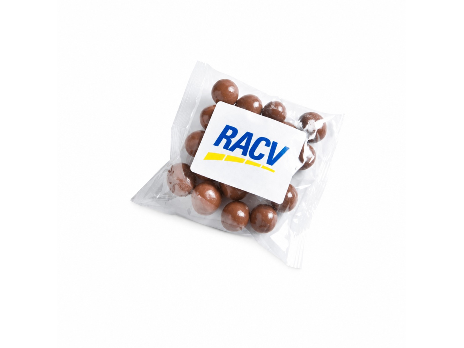 Chocolate Coated Coffee Beans 50 grams chocolate coated coffee bean to energise your customers or staff. Chocolate Coated Coffee Beans are a great way to treat your customers at the next tradeshow or corporate function. Printed with a full colour sticker these choc coated coffee beans are a great treat.