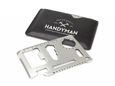 Custom brand these multi function stainless tool business cards or one of our best-selling promotional tool kits with your company logo!