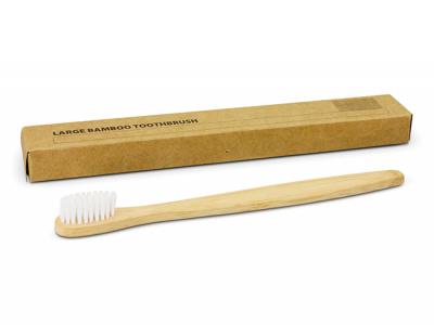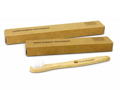 Natural Eco Bamboo Toothbrushes are a bamboo toothbrush which is available in both adult and kids sizes. It is manufactured from sustainably grown bamboo which is biodegradable and provides an eco-friendly alternative to plastic toothbrushes. The bamboo is heat treated to produce a hardened, water resistant finish that is naturally anti-bacterial. It has medium hardness nylon bristles which are BPA free and it is presented in an unbleached cardboard box with product information on the back. The toothbrush handle laser engraves to a natural etch. Wood is a natural material which produces unavoidable variances in the grain pattern, colour and branding.