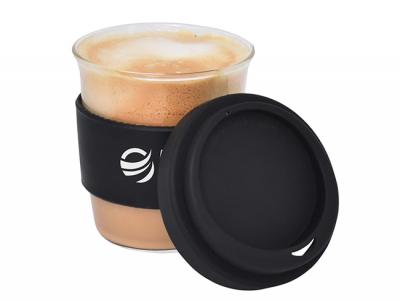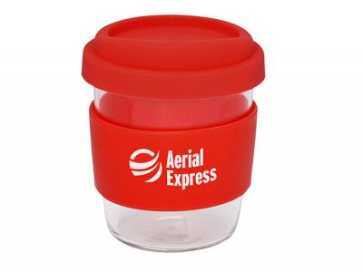 Personalize your small peak glass coffee cups (290ml) or custom design glass reusable coffee cups for your marketing campaign.