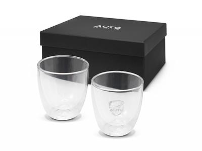 Incorporate branded auro double walled glass sets (310ml) in your next promotional campaign