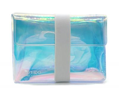 Our gorgeous looking Holographic shimmer PVC Bags make a great Gift with purchase cosmetic bags will help your cosmetic or fashion brand sell your products. Custom made in your choice of size and colour and custom printed with your logo. The translucent cosmetic bags have a slight holographic shimmer to them giving them a contemporary feel.