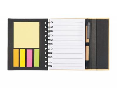 Jinks Post It Pocket Notebooks With Pen is a spiral notebook that includes 70 ruled pages, 25 sheet sticky memo pad, sticky flags in 4 assorted colours and a recycled cardboard ballpoint pen. Jinks also folds nicely with a magnetic closure for easy handling and a compact design.